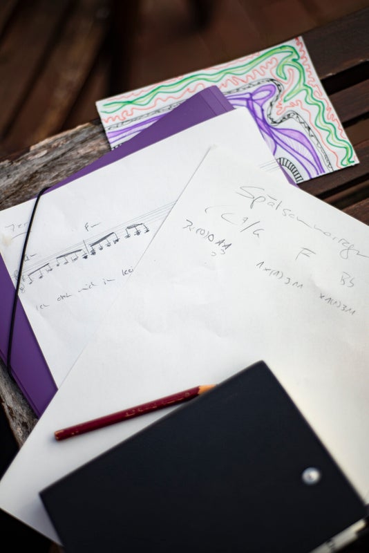 Ein Aufenthalt außerhalb der Großstadt ist erfahrungsgemäß die ideale Umgebung um wieder einen klareren Fokus zu finden, durch den ich die Liedideen in mir hervorholen und ausformulieren kann. Bereits 2024 löste sich diese Erfahrung während einem kurzen privaten Aufenthalt in der Lüneburger Heide ein. Als Inspirationsquelle fürs Songschreiben nutze ich seit Jahren besonders gern abstrakte Werke der bildenden Kunst und Detailbeobachtungen bei Spaziergängen – v.a. solche, in denen unsere menschlich geformte Umgebung und die Natur miteinander interagieren. Diese Inspirationsquellen wirken häufig als Katalysator für bereits schwelende Themen. Meditative Bewegung im Freien, wie Gehen oder Fahrradfahren, gibt meinen Textansätzen und musikalischen Ideen oft Raum zum Fliegen, um sich weiterzuentwickeln, Metamorphosen zu durchwandern und lässt sie poetischer, vielschichtiger und feinsinniger werden. Möglicherweise liegt meine neue Ausdrucksform darin, die Lücken zwischen den Inseln in meinem Kopf weiter zu verbinden: klassische Gitarrentechniken für die Begleitung poetischer deutschsprachiger Songs zu nutzen und diese bei Bedarf ganz sanft mit ungewöhnlichen, feinen Klangqualitäten gefundener Objekte und selbstgebauter Instrumente zu ergänzen.