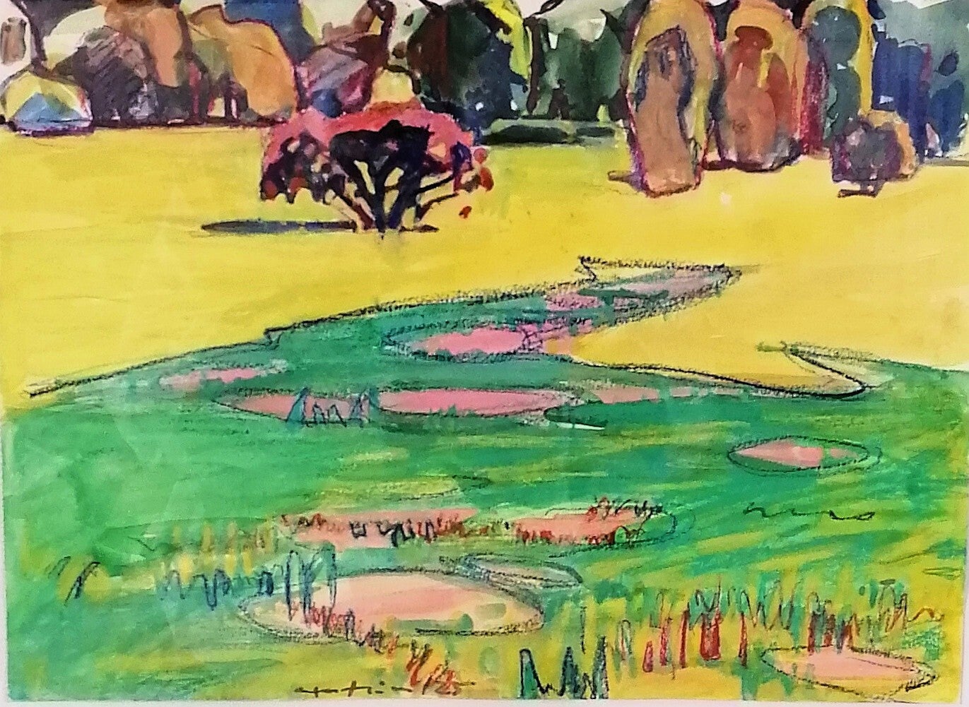 Konkret für mich - ich konnte, nach einigen Tagen der Angewöhnungszeit, auf die Natur der Umgebung eingehen, gut von meinen Spaziergängen sowie einigen Ausflügen zehren und realisierte mehrere klein- und mittelformatige Papierarbeiten. Thematische Anstöße waren dabei das in seiner Einmaligkeit wunderschöne Arboretum auf dem Grundstück, der umliegende Wald und natürlich die Heide.
