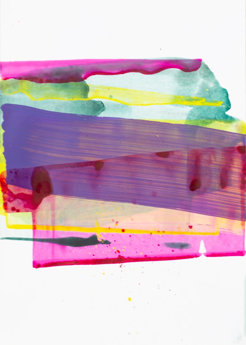 Am Ende des Malprozesses entstehen Farb-architekturen, in denen Zonen der Transparenz mit opaken Flächen kontrastieren und deren Organisation Brüche aufweist.